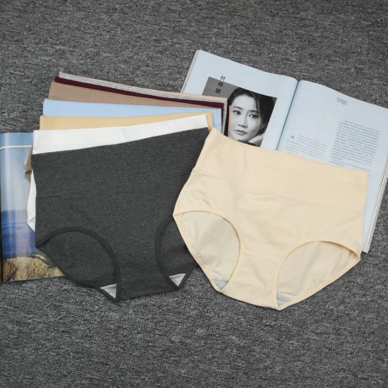 4条装纯棉质高腰内裤女士加大码透气收腹抗菌无痕中腰三角女裤头
