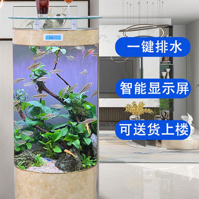 2025新款圆柱形鱼缸立式客厅高端落地金鱼缸过滤制氧一体机水族箱