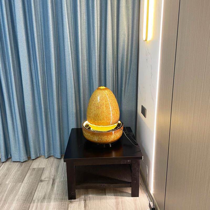 创意流水摆件客厅桌面圆形招财陶瓷鱼缸循环生态水族箱中式开业礼