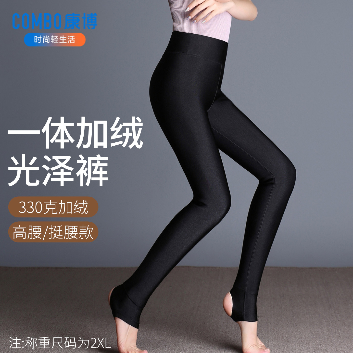 康博秋冬季亮面加绒加厚光泽裤女外穿高腰保暖棉裤光面大码打底裤