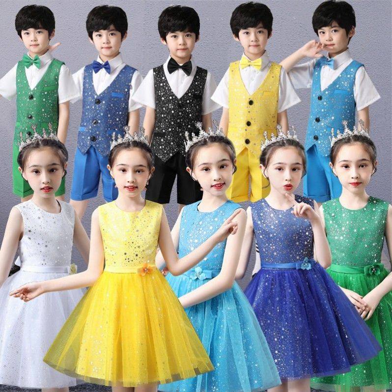 六一儿童演出服亮片公主蓬蓬裙女童跳舞表演合唱服幼儿园小学生新