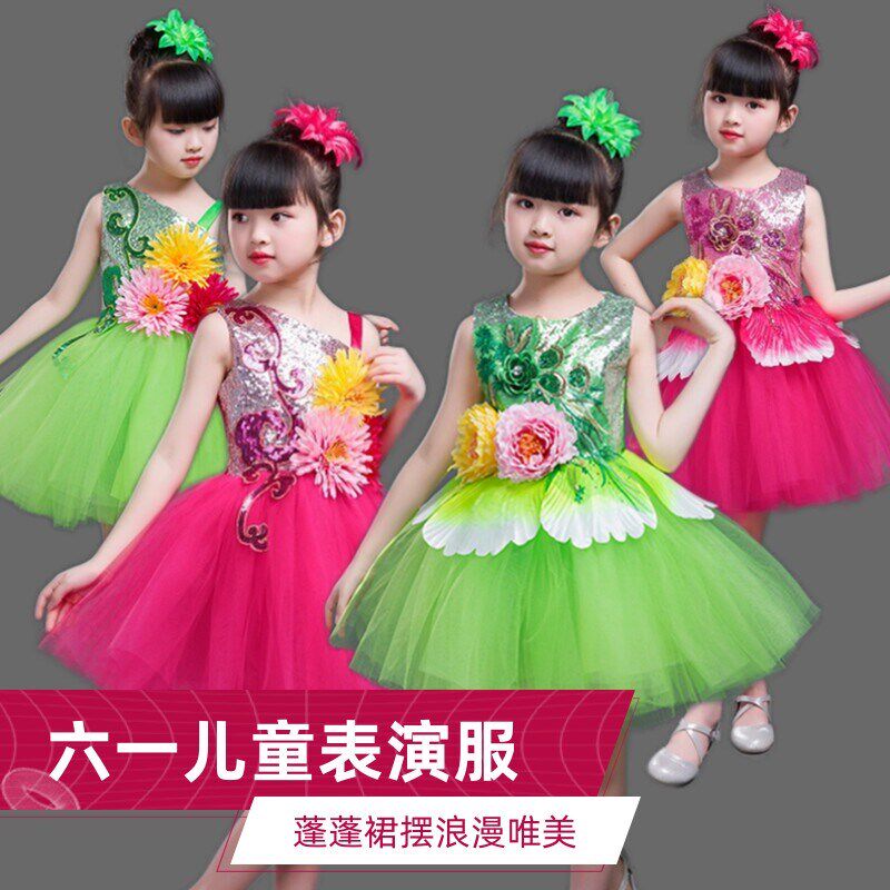 正品儿童唱小青蛙表演礼服女孩快乐阳光独演歌出公主蓬蓬裙女童可