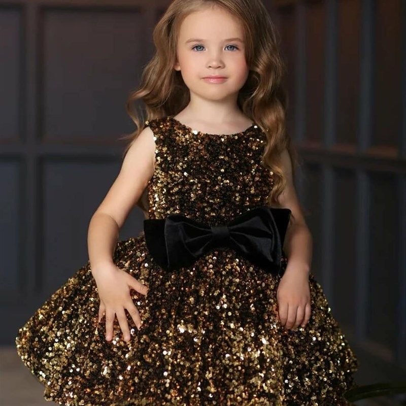 儿童闪亮片短款公主蓬蓬裙女童T台走秀比赛主持人钢琴演出晚礼服