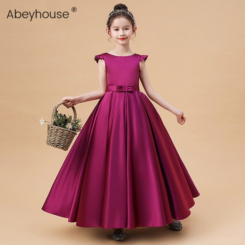 中大童超洋气公主蓬蓬裙女童长款缎面主持花童裙小女孩高档演出服