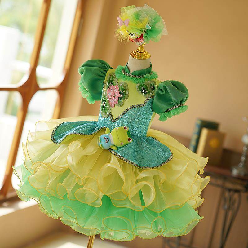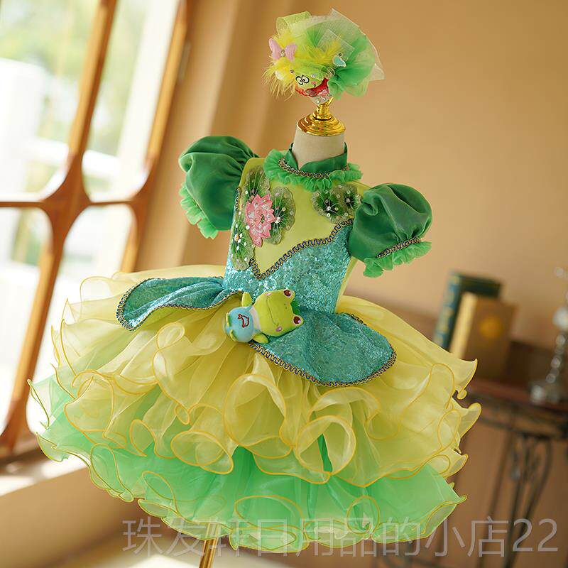 高档独儿童演唱礼小青蛙表演服女孩快乐阳光唱歌出公主蓬蓬裙女童