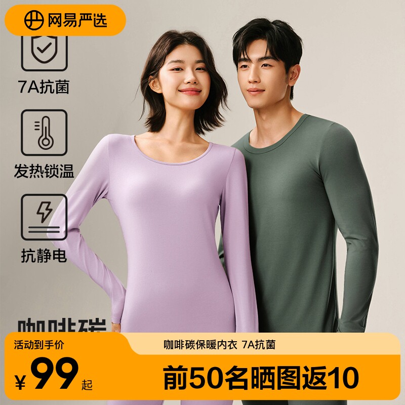 网易严选咖啡碳保暖内衣情侣秋衣男士女秋裤加绒圆领长袖2025冬