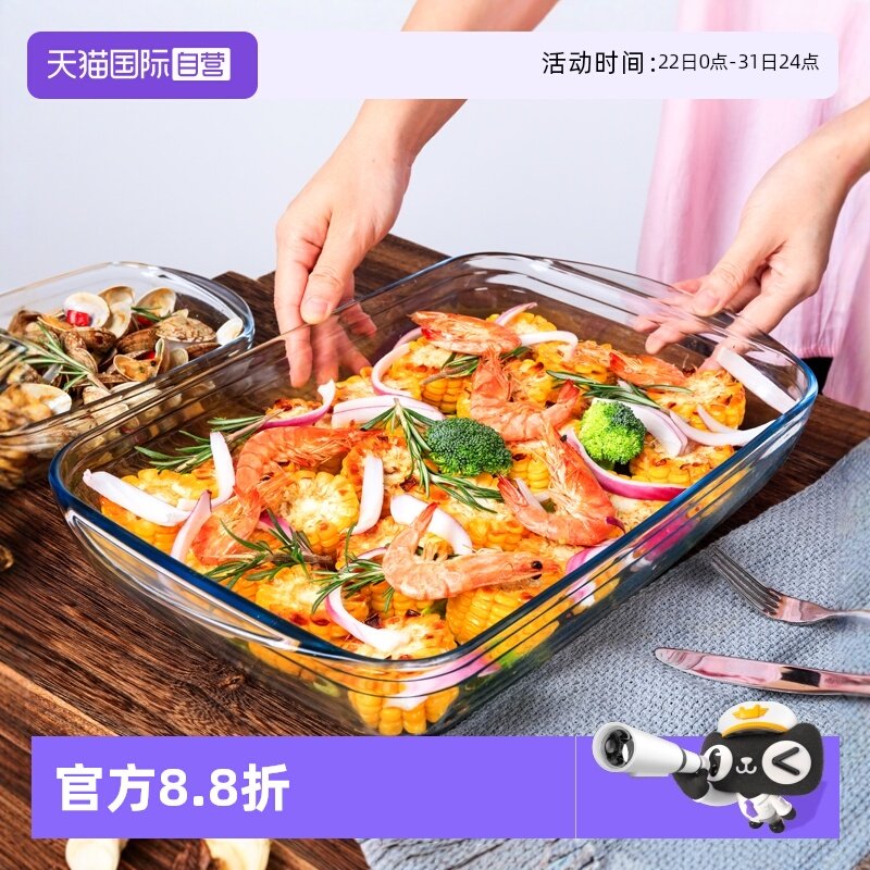 ocuisine玻璃烤盘蒸烤箱微波炉专用器皿耐高温捞汁小海鲜方盘家用