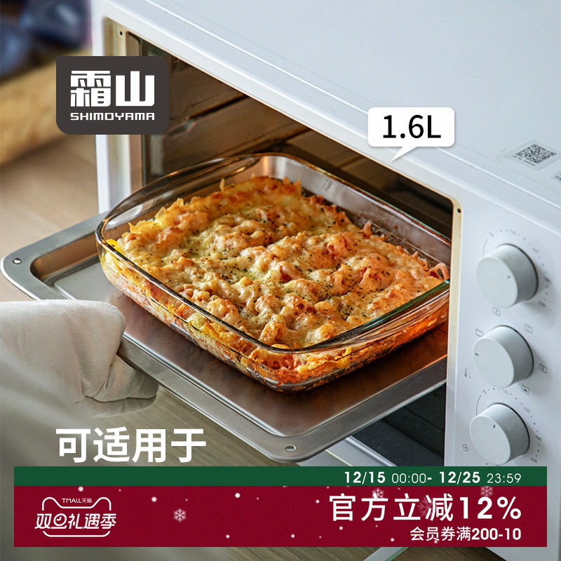 霜山玻璃烤盘烤箱微波炉加热器皿家用沙拉焗饭餐盘蒸鱼盘长方形盘