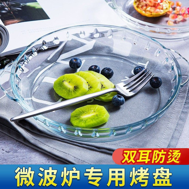 耐高温钢化玻璃烤盘微波炉专用餐具家用透明焗饭盘子耐热蒸蛋餐盘