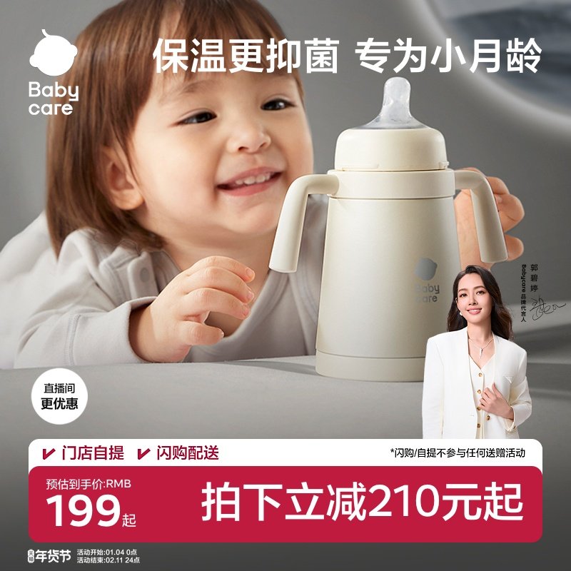 babycare小月龄保温吸管水杯宝宝婴幼儿童奶瓶6个月以上外出防呛