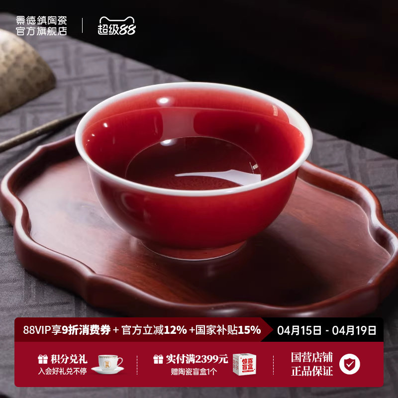 景德镇官方陶瓷郎红主人杯茶具家用茶杯新婚送礼个人专用杯送长辈