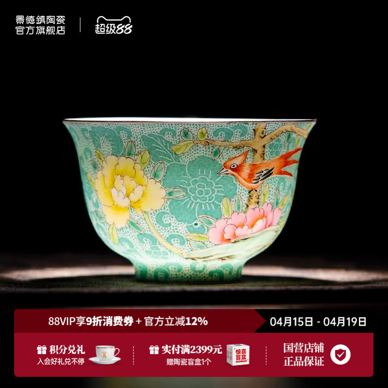 景德镇官方陶瓷扒花主人杯高温家用功夫茶具高端个人品茗杯喝茶杯