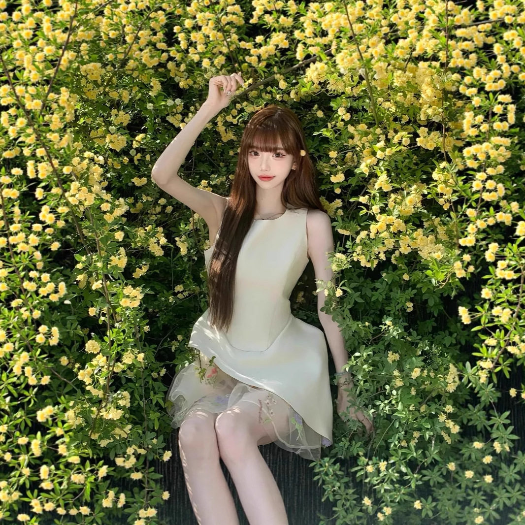 2025春夏新款韩版修身显瘦公主裙短裙气质蓬蓬裙无袖背心裙连衣裙