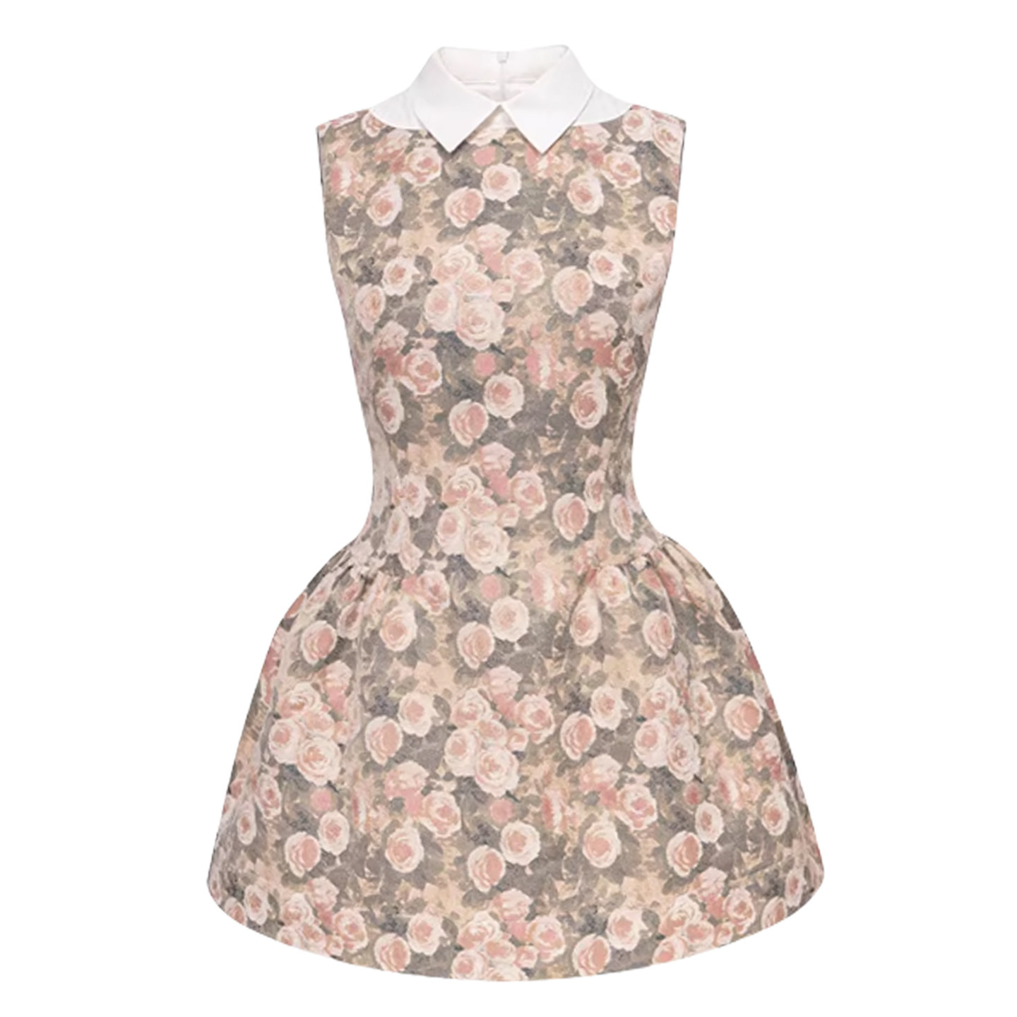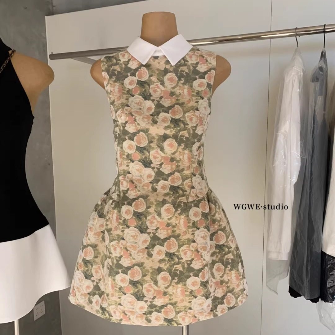 RECIT 玫瑰油画衬衫领无袖连衣裙女冬季千金风蓬蓬修身收腰背心裙