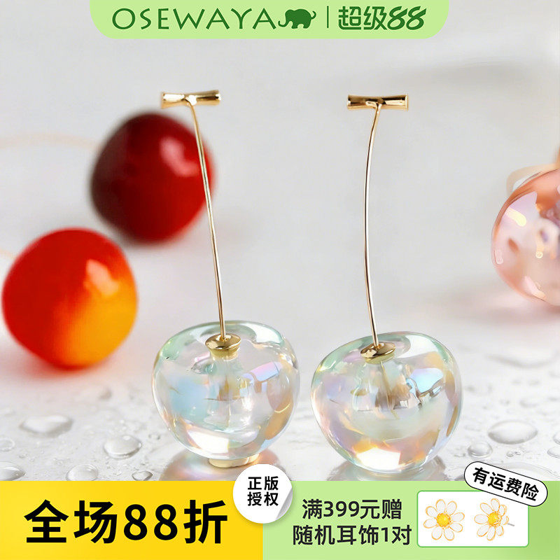 OSEWAYA耳钉气质设计感樱桃耳环春夏甜美清透耳饰红色车厘子耳线
