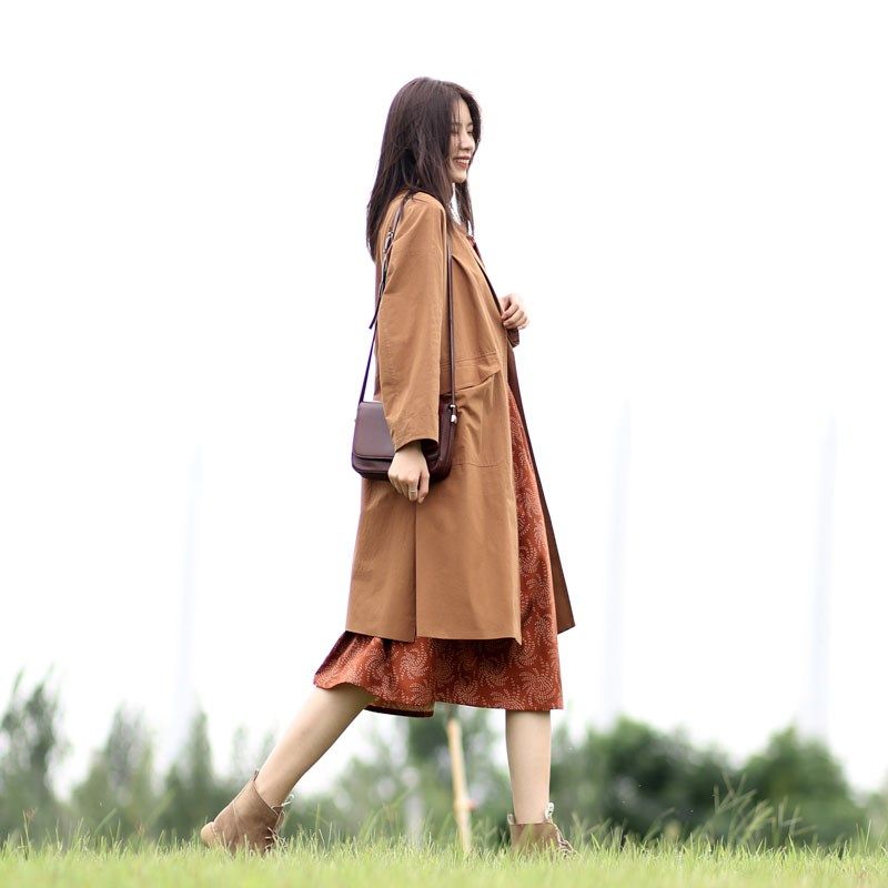 休闲纯棉风衣女韩版宽松廓形薄全棉军绿色风衣秋装新款中长款外套