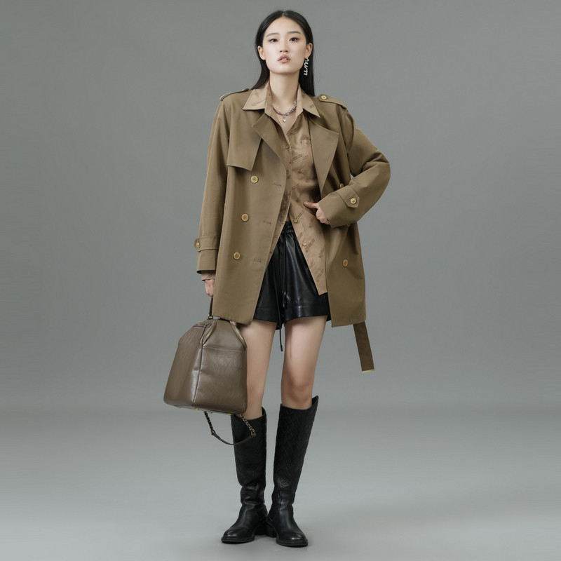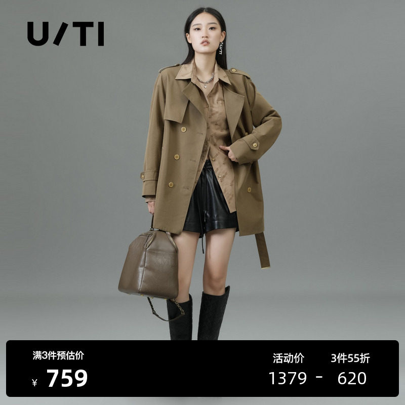 uti尤缇2025春季新款 军绿色双排扣休闲风衣女外套UK140808743