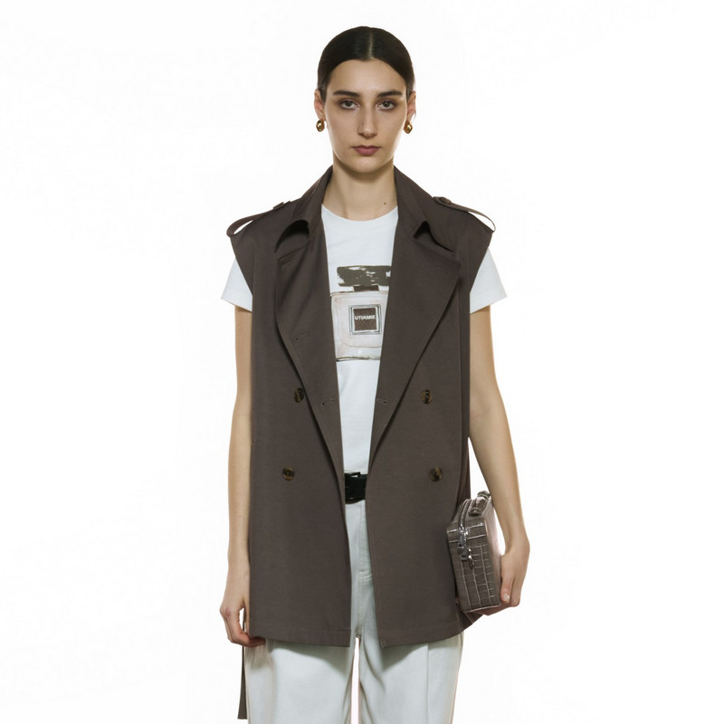 U/T军绿色短款风衣马夹女装 设计感通勤无袖外套尤缇2025秋季新款
