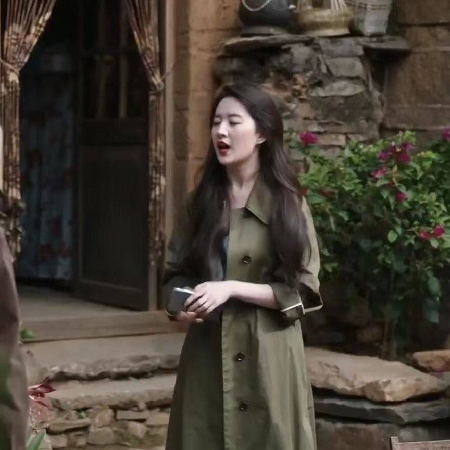 玫瑰的故事刘亦菲同款军绿色风衣女2024春秋新款宽松中长款外套