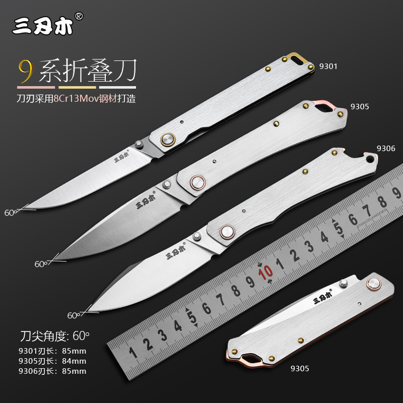 三刃木不锈钢折叠刀家用水果刀便携随身迷你小刀多功能开箱削皮刀