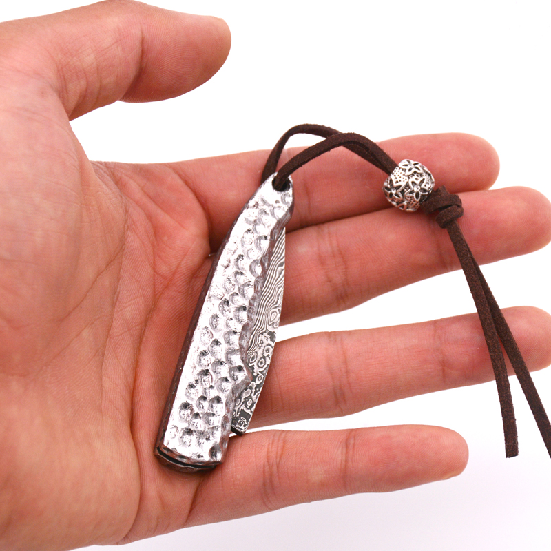 大马士革高硬度折叠刀锋利女子防身刀野外生存战术刀随身迷你小刀
