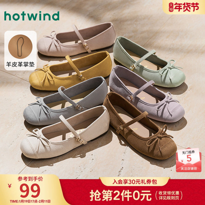 热风平底玛丽珍鞋女鞋2025年春季新款女士时尚通勤舒适浅口单鞋