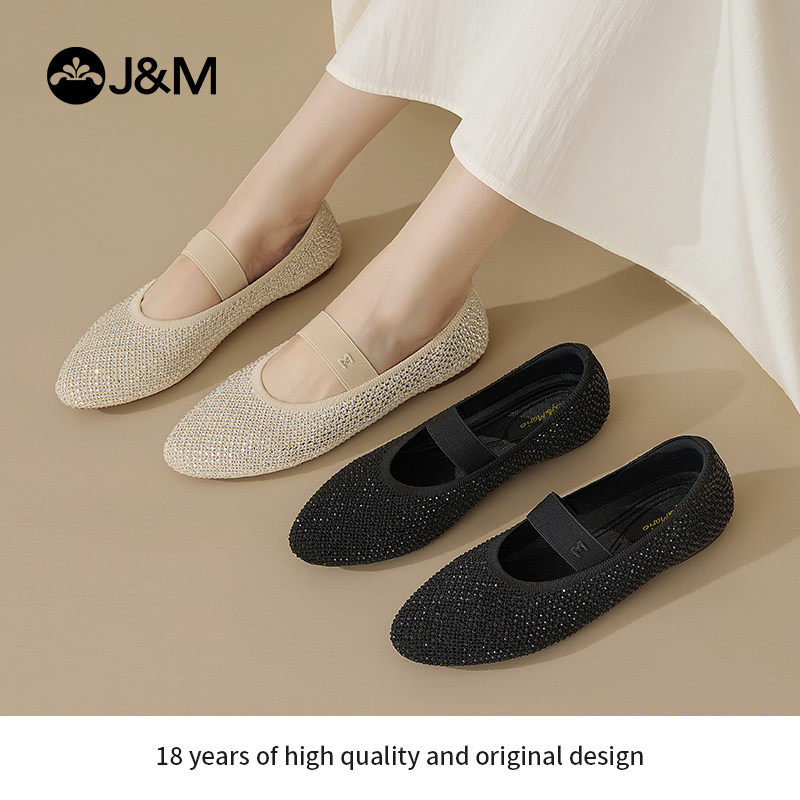 快乐玛丽平底休闲单鞋女新款烫钻尖头飞织王妃鞋女士浅口玛丽珍鞋