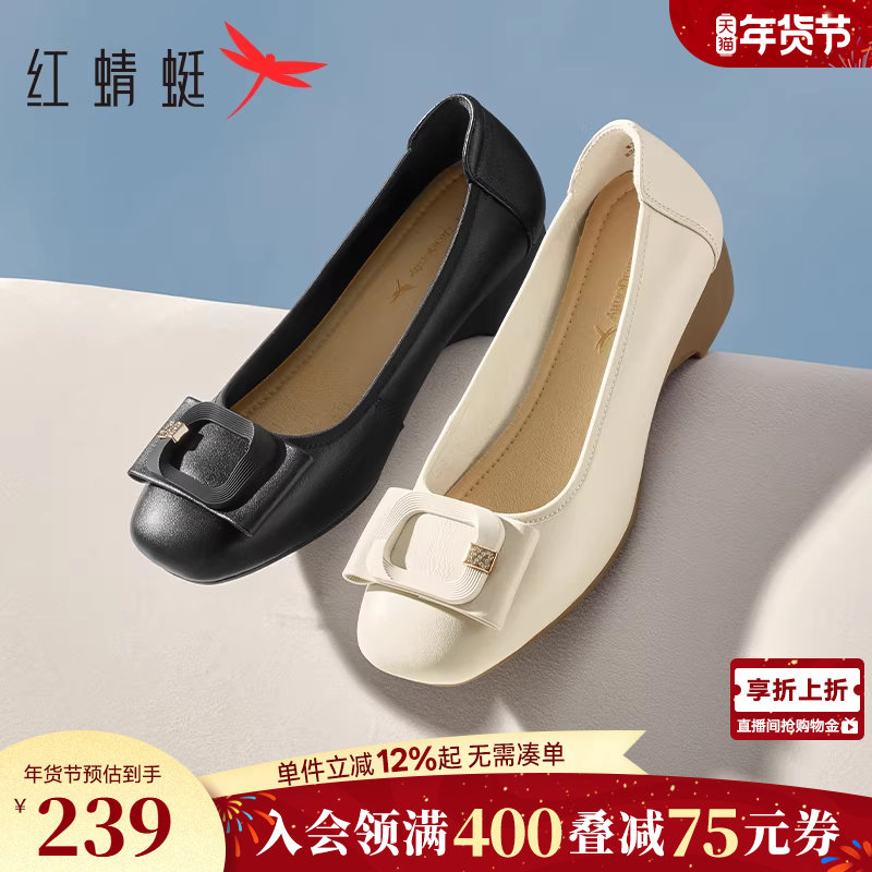 红蜻蜓乐福鞋女春季新款一脚蹬女鞋软底舒适黑色单鞋女士平底皮鞋