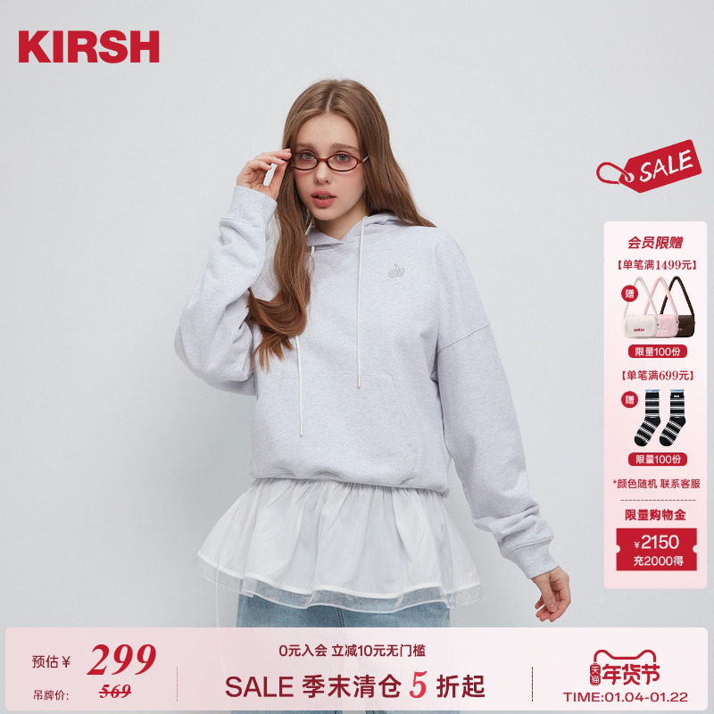 樱桃KIRSH 纯色连帽短款刺绣连帽卫衣女22025春秋休闲街头韩版