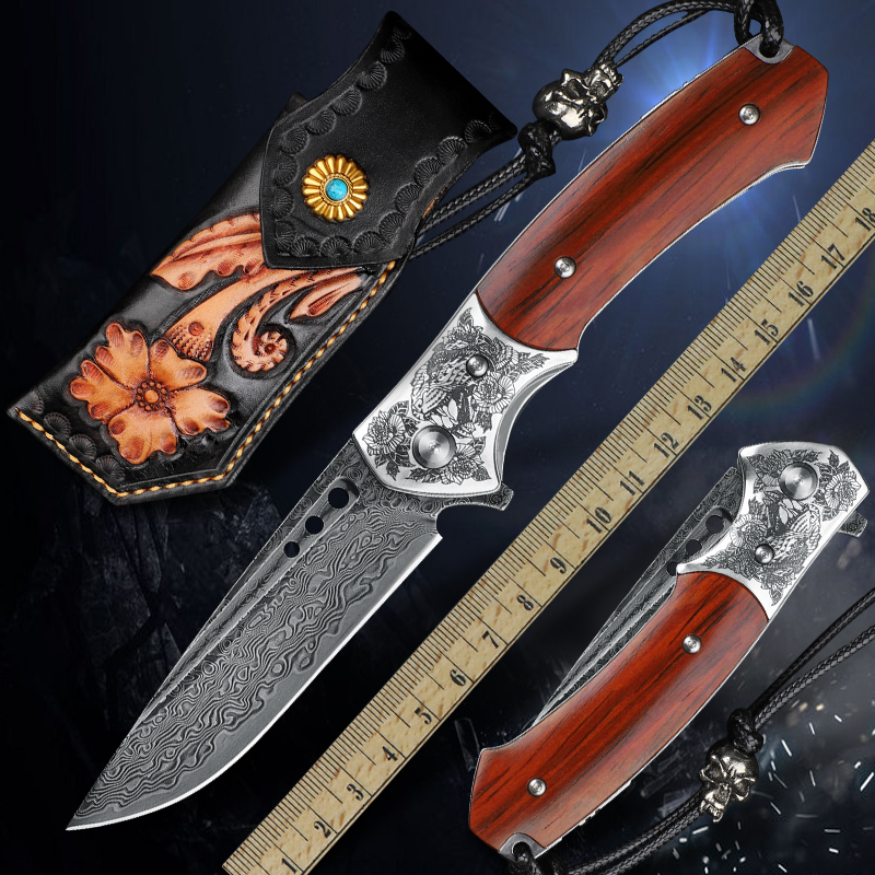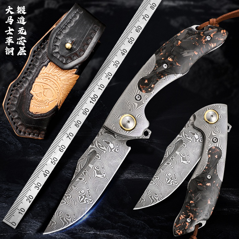 速发梦刀大马士革钢景户随防身折叠刀锋利高硬度小刀外身求生刀具