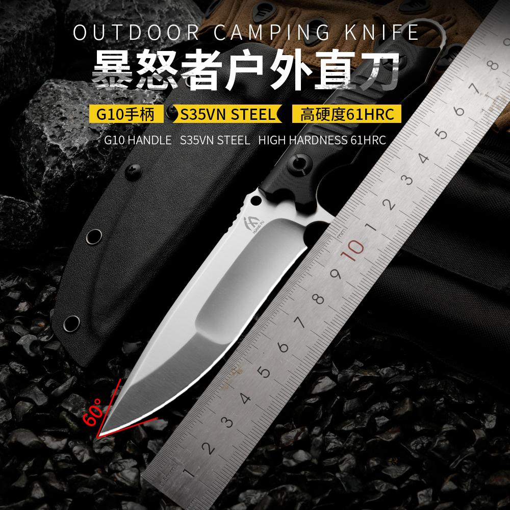 户外生存小刀锋利高硬度野外求生战术随身直刀开刃刀具防身冷兵器