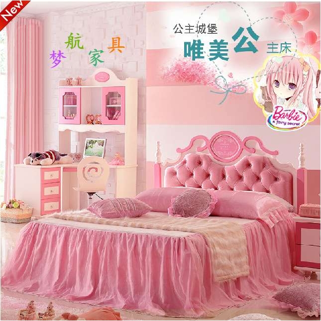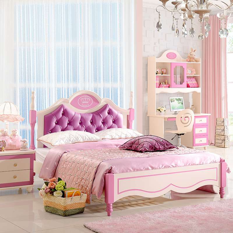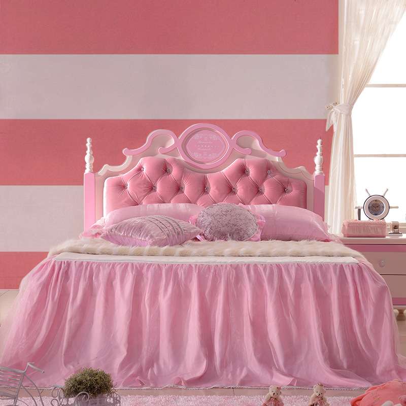 全实木欧式儿童床女孩组合套房家具公主床粉色单双人床15米18米