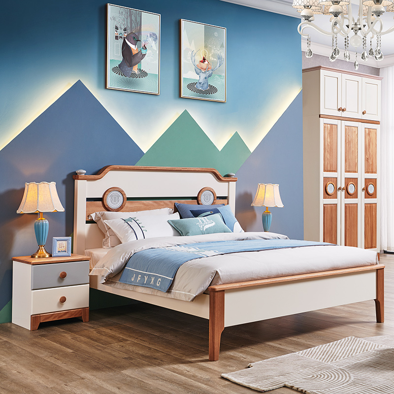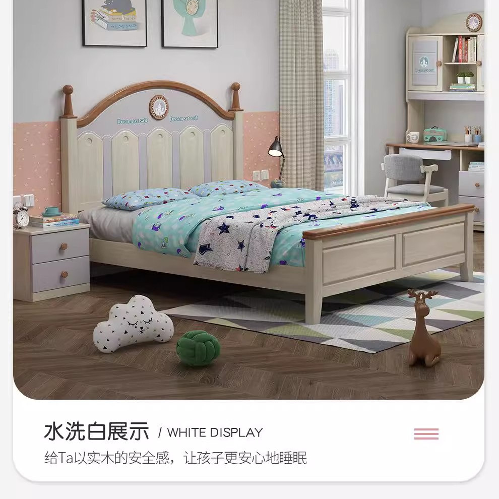 儿童实木床1.2m男女孩青少年现代简约美式环保水性漆套房家具组合