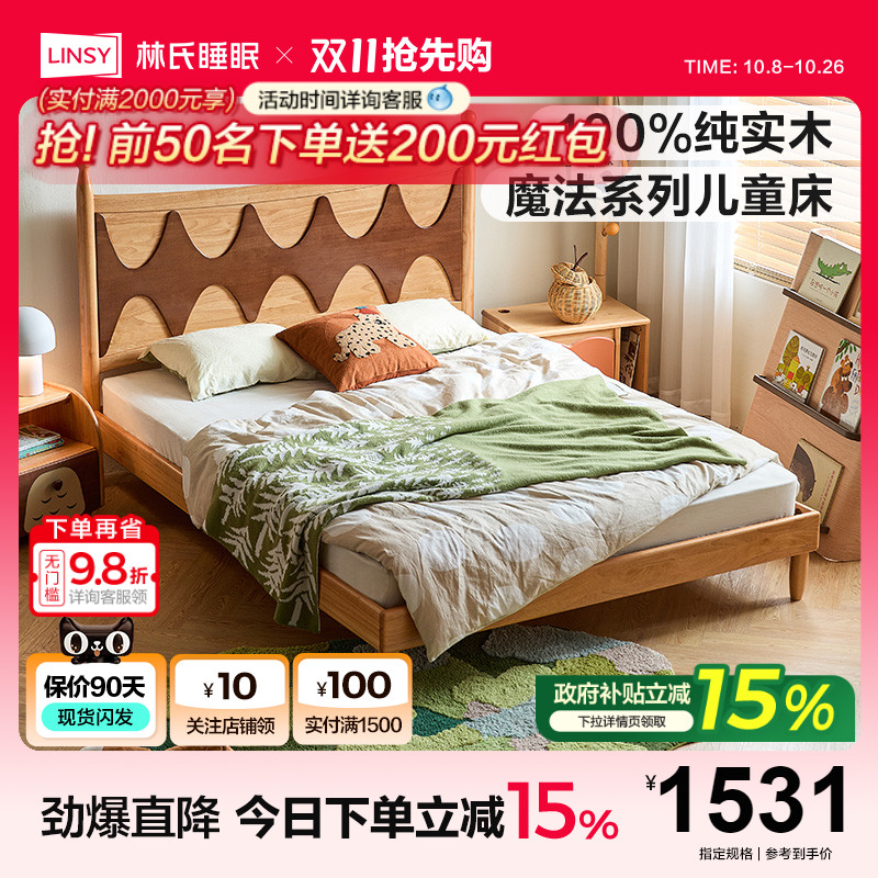 林氏家居全实木儿童床男孩女孩北欧风套房卧室家具林氏木业LH325