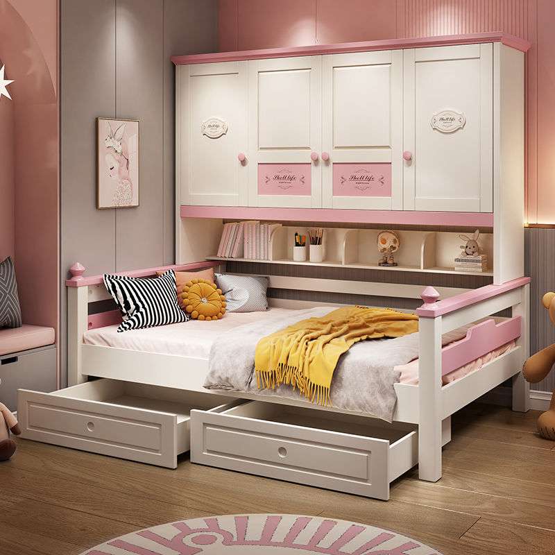 全实木儿童衣柜床一体女孩公主床1.2米单人床小户型储物套房家具
