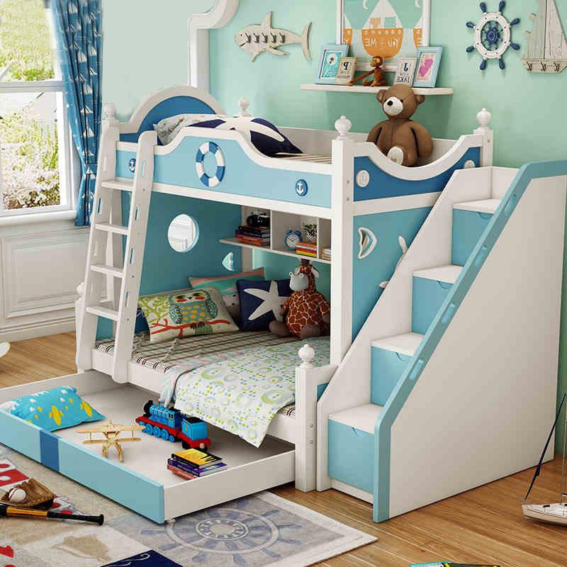 全实木原木北欧式儿童床男女孩套房家具木蜡油红檀木单双人床航海