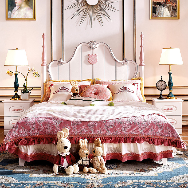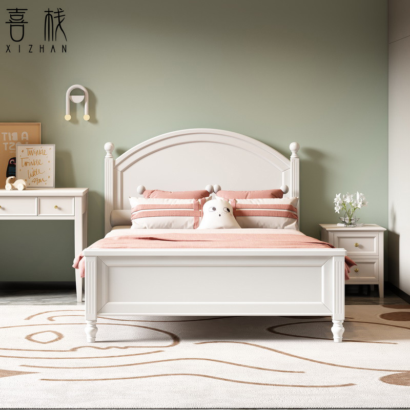 简约现代卧室儿童床美式实木女孩公主床单人床1.35米儿童套房家具