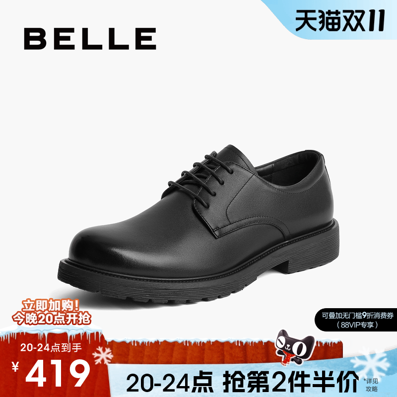 百丽男鞋通勤休闲商务正装鞋加绒冬季德比结婚新郎皮鞋B3GK3CM1