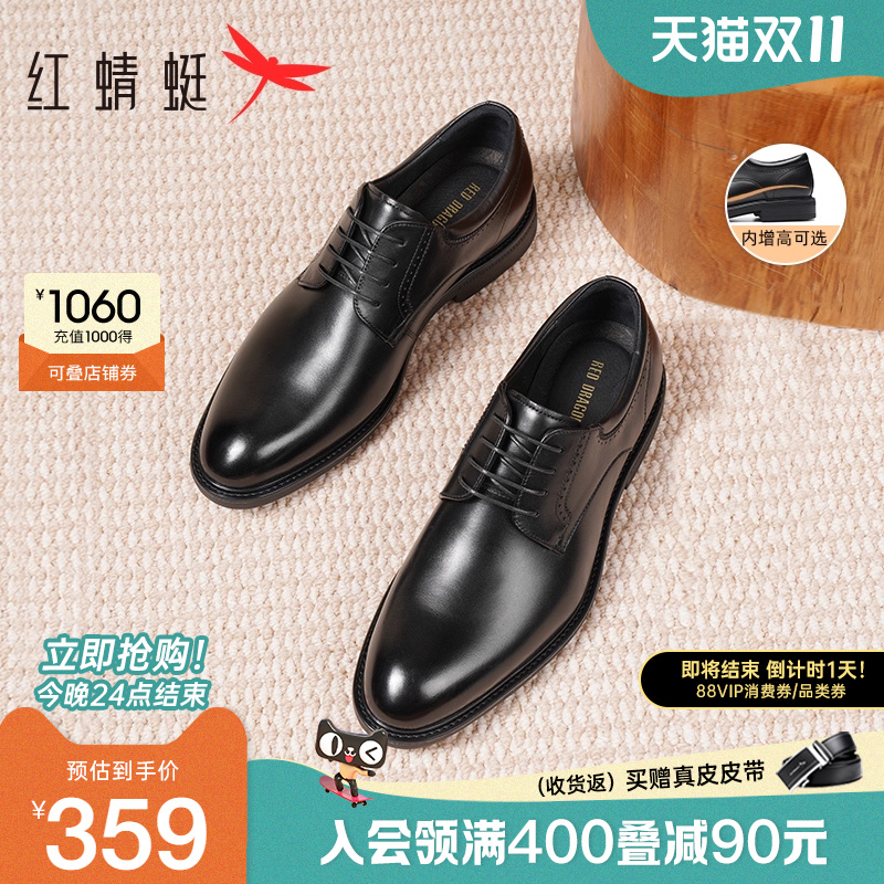 红蜻蜓男鞋商务正装皮鞋男真皮增高德比鞋子年轻人结婚新郎鞋男士