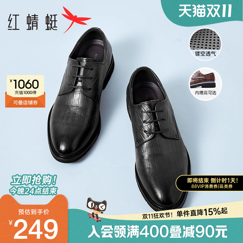 红蜻蜓男皮鞋英伦风年轻款男士鞋商务正装皮鞋内增高新郎结婚鞋子