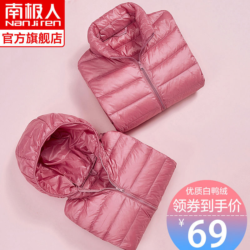 清货 冬季新款轻薄羽绒服女短款连帽超轻保暖白鸭绒外套超薄大童