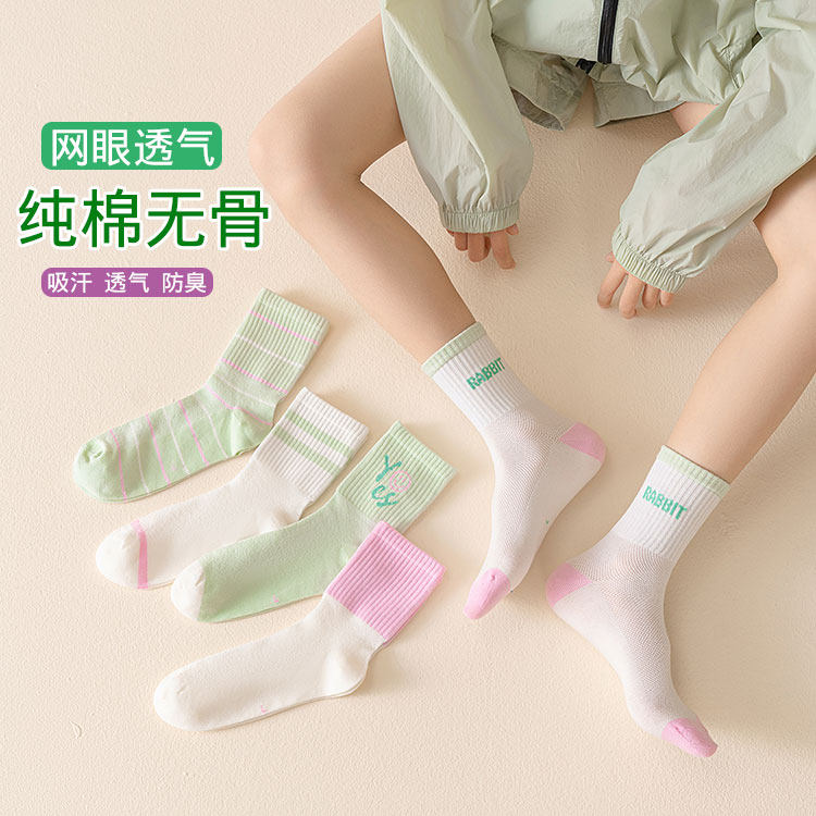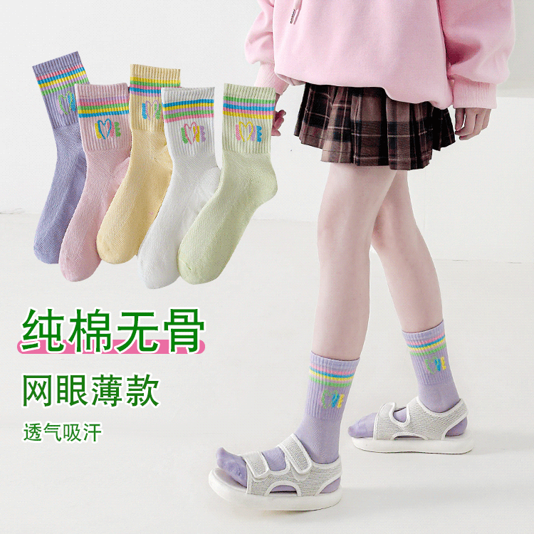 女童袜纯棉中筒透气薄款儿童无骨袜中大童夏季运动袜女孩网眼袜子