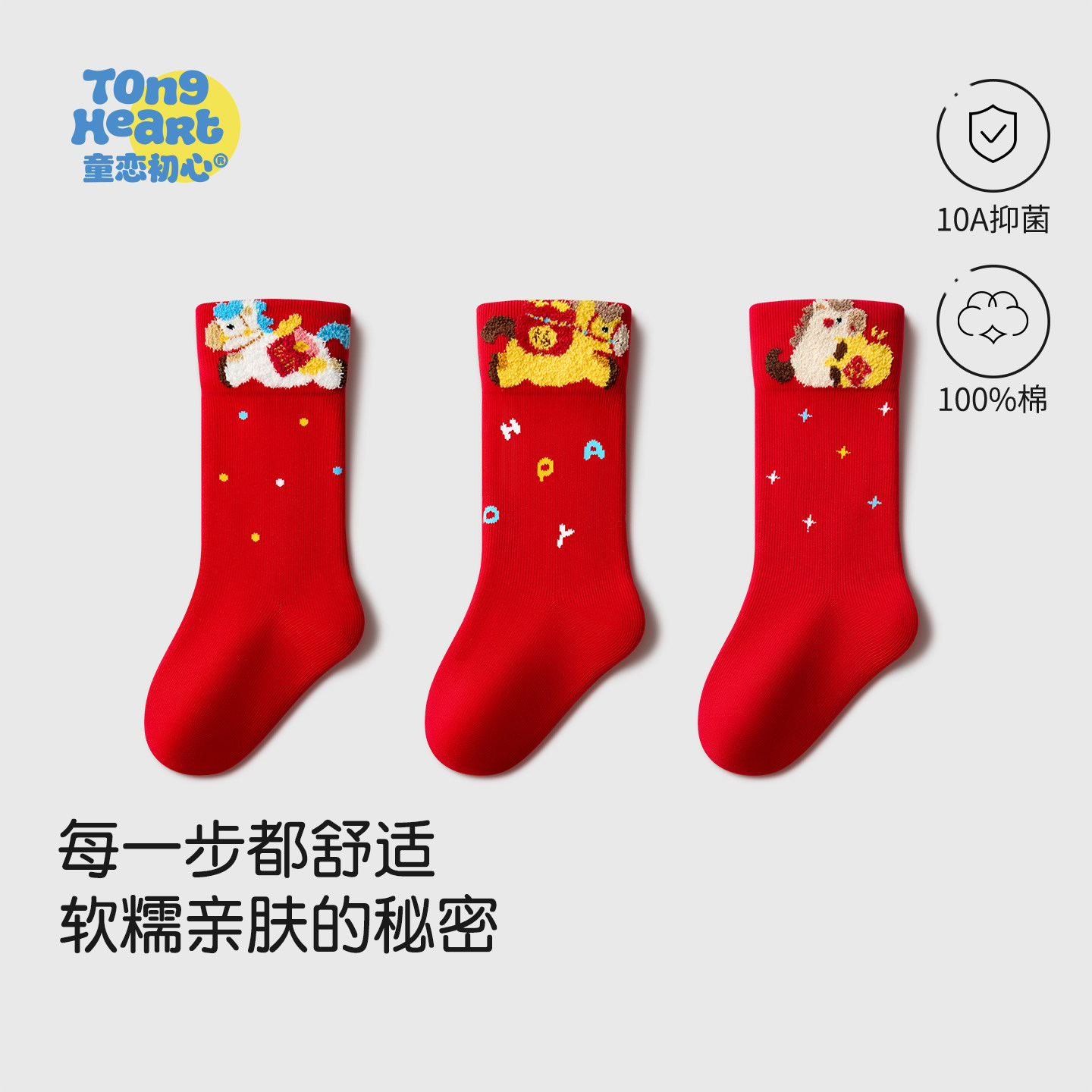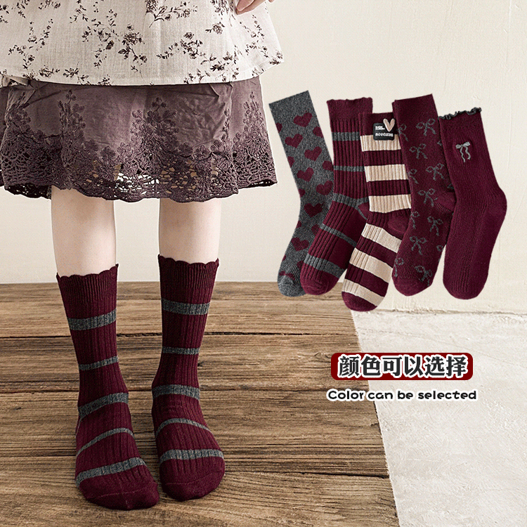 婴儿红色袜子宝宝过年棉袜秋冬男女童袜纯棉新年袜周岁儿童中筒袜