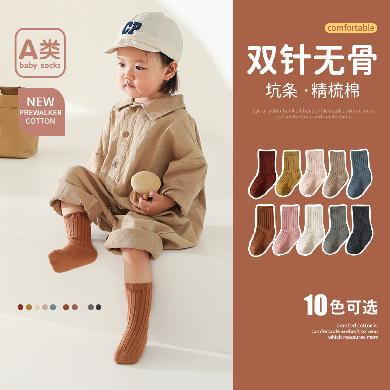 23春秋款儿童袜子韩版双针纯色童袜男童女童袜纯棉婴儿宝宝中筒袜