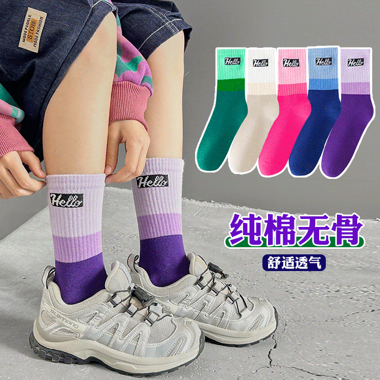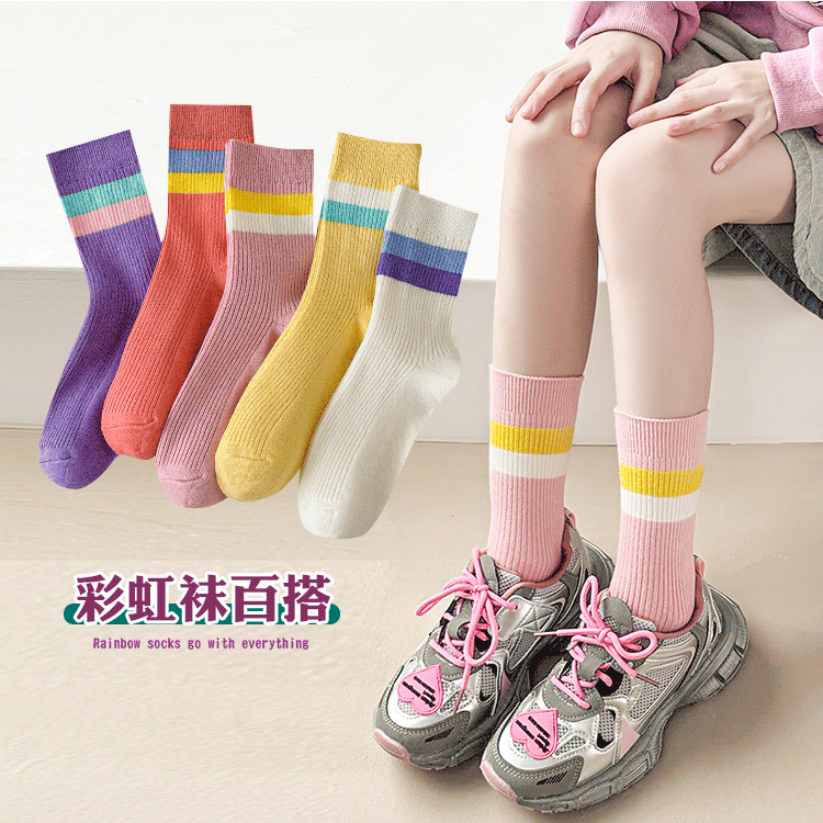 女童袜纯棉彩色中筒袜秋冬季儿童运动袜中大童袜春秋女孩全棉袜子