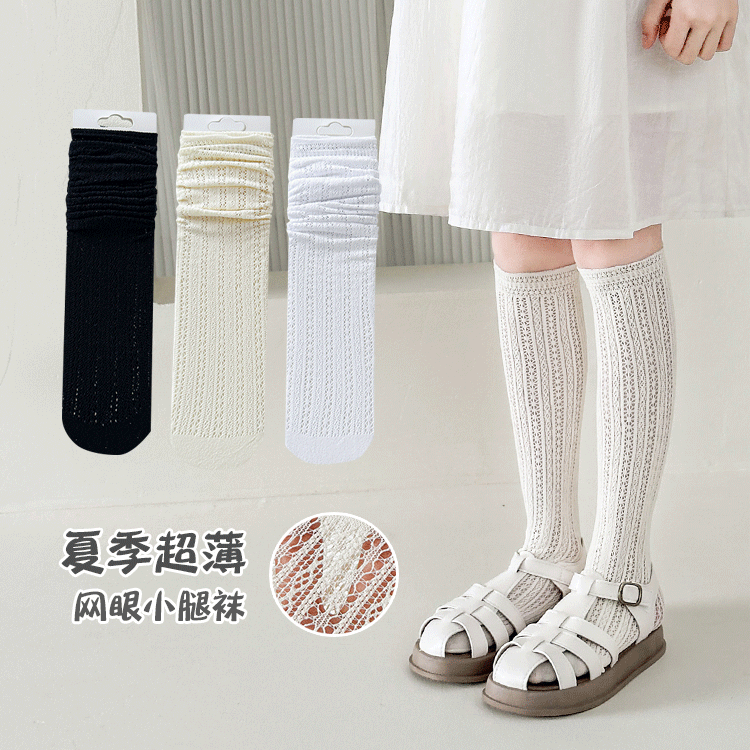 女童袜纯棉夏季薄款儿童长筒袜宝宝网眼袜白色夏天女孩小腿棉袜子