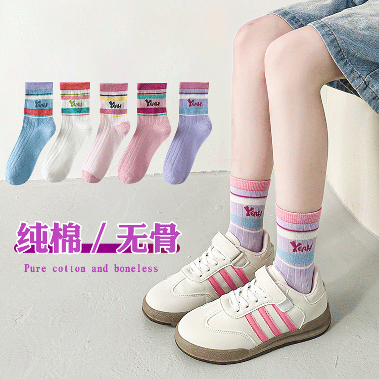 女童袜纯棉中筒无骨袜春秋潮流运动童袜中大童女孩袜儿童全棉袜子