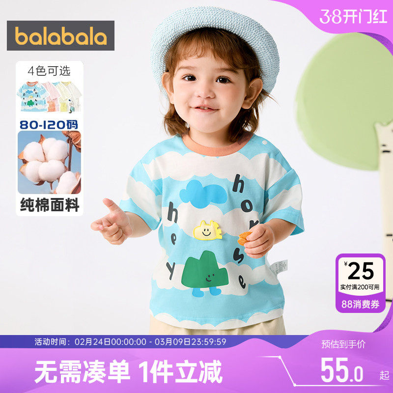 巴拉巴拉宝宝短袖T恤男童女童纯棉上衣夏季新款童装婴儿半袖衣服