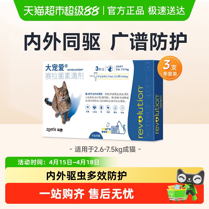 大宠爱旗舰店成猫幼猫犬体内外一体驱虫药滴剂驱耳螨跳蚤猫咪狗狗