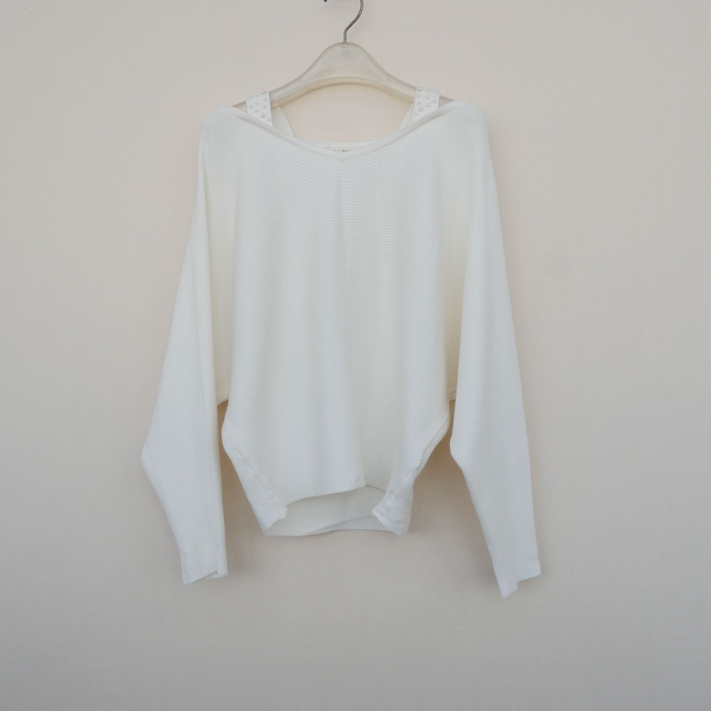 拉系SML撤柜正品 女春秋蝙蝠型冰丝亲肤舒柔长袖针织衫6A7620白色